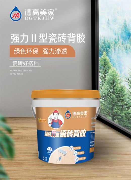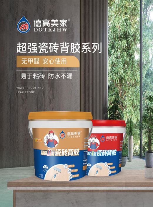 旗下產品德高美家超強瓷磚背膠系列,被譽為“瓷磚空鼓脫落的克星”。系列產品分為兩大產品——“強力Ⅰ型瓷磚背膠”和“超強Ⅱ型瓷磚背膠”,具有超強的粘接性、抗酸堿、防滲水的能力,抗老化性,可在瓷磚與瓷磚粘結材料之間架起一道牢固的“橋架”,沒有硬力破壞,不會脫落。
