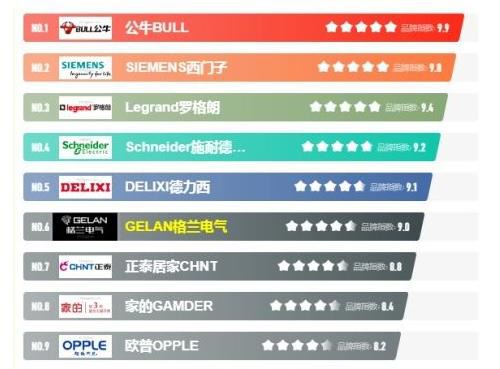 所以,為了保證用電的安全、家庭的安全,我們在選擇開關(guān)插座時盡量要選擇一些大品牌的產(chǎn)品,其質(zhì)量是有一定的保障的,像公牛、西門子、德力西、正泰和施耐德等品牌的開關(guān)插座質(zhì)量都挺不錯的,具體可以參考下面的排行版:
