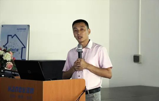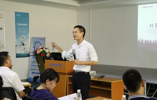 參觀完廠區(qū)后,便由漢的電氣董事長杜漢民先生向各參會人員講述漢的電氣的發(fā)展歷程并為大家分享了公司在發(fā)展過程中是如何建立信念系統(tǒng)、企業(yè)管理、產(chǎn)品定位、團隊管理四個方面的經(jīng)驗,得到了大家高度認可。