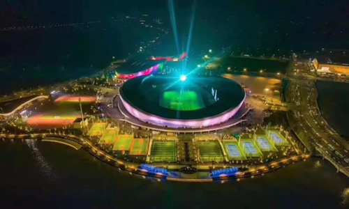 整個體育場館的景觀照明設計以“潮起杭州灣”為主題,用燈光分別為場館展現“潮涌”、“朝霞”、“賽事”三種風格。