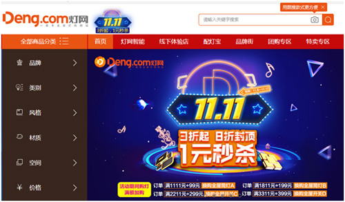 據(jù)調(diào)查,目前大多數(shù)中國(guó)家庭的燈飾消費(fèi)約占裝修費(fèi)用的10%,結(jié)合“互聯(lián)網(wǎng)+”創(chuàng)新氛圍的大力推動(dòng),可見(jiàn)現(xiàn)階段燈具電商行業(yè)正處于良好的市場(chǎng)大環(huán)境。Deng.com燈網(wǎng),這家專業(yè)賣燈的電商平臺(tái),正是在此環(huán)境下獲得迅速成長(zhǎng),在去年(2018年)持續(xù)3天的“雙11”活動(dòng)中,創(chuàng)下了全新記錄——累計(jì)超出1.05億的成交額。