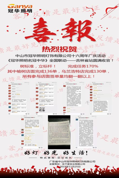 始于顏值、陷于品質(zhì)、忠于品牌這是對金總最好的寫照,18歲就已開始接觸燈飾行業(yè)的他,多年在這一行摸爬滾打練就一身本領(lǐng),讓他對這個市場有著獨(dú)到的眼光與敏銳的市場洞察力。經(jīng)朋友的介紹,了解到冠華照明這個燈飾品牌,并覺得冠華照明的發(fā)展理念很有前途,業(yè)務(wù)團(tuán)隊較為成熟,果斷決定加入這個大家庭。從最初的單打獨(dú)斗,到如今有成熟團(tuán)隊的冠華照明榆樹專賣店,寶劍遇英雄、成就了冠華照明和金宏偉的不平凡。在短短11個月的時間里逆勢上揚(yáng),完成銷售額150萬的傲人成績,能完成如此傲人的成績和冠華照明的產(chǎn)品款式、品質(zhì)、品牌推廣與扶持是離不開的。金總每每見到旁人便如是說到!