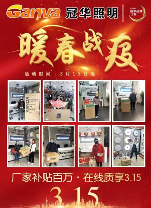 為客戶所想,做客戶所需!一直都是冠華照明的處事風(fēng)格,在2020年開年之際,突如其來的新冠肺炎疫情讓經(jīng)銷商手足失措,往年開年的活動盛景不再。冠華照明吉遼蒙運(yùn)營中心立即斥巨資啟動《暖春戰(zhàn)疫》質(zhì)享3.15的活動。解決了客戶燃眉之急。并快速打響了2020年的銷售第一槍。