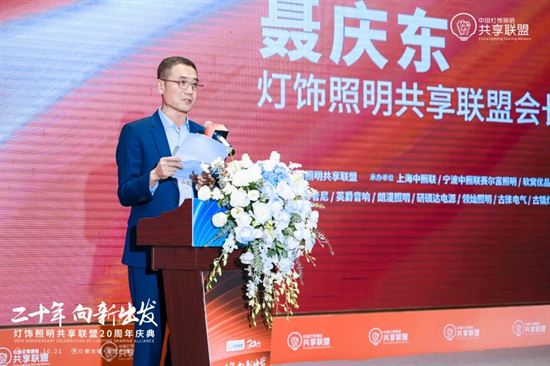 會(huì)議伊始,燈飾照明共享聯(lián)盟會(huì)長聶慶東登臺發(fā)表致辭。回憶“創(chuàng)立燈飾照明共享聯(lián)盟的初心”,他談道:“2003年,燈飾照明共享聯(lián)盟創(chuàng)會(huì)會(huì)長林華生先生和六位城市大商一拍即合創(chuàng)立了共享聯(lián)盟,其初心是降低生產(chǎn)和采購成本,實(shí)現(xiàn)生產(chǎn)、流通和服務(wù)多方共贏。”
