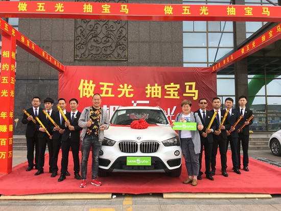 此次活動激動人心的環(huán)節(jié)——抽寶馬汽車,將當日的氣氛推向了高潮。通過公平、公正、公開的抽取方式,來自江蘇宿遷沐陽縣的李總夫婦抽中了寶馬汽車,喜悅之情溢于言表,他們表示,“做五光 抽寶馬”,五光十色不僅成就了自己的事業(yè),還收獲了大驚喜。除寶馬大獎以外,更有蘋果手機、平板電腦、電視等豐厚獎品回饋客戶,使現(xiàn)場氣氛持續(xù)火熱。