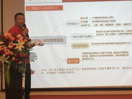 在場下嘉賓目光的追隨下,澳克士照明辦事處經理孫偕程先生就“山東蘇北運營規劃與智慧門店系統應用”為主題深入淺出地發表了專題演講。透過孫經理的演講,我們可看出澳克士照明總部對山東蘇北區域的重視與期望。而我們也有充分理由相信,通過智慧門店系統的投入與運營,山東蘇北區域的門店運營必將煥發出新的希望。