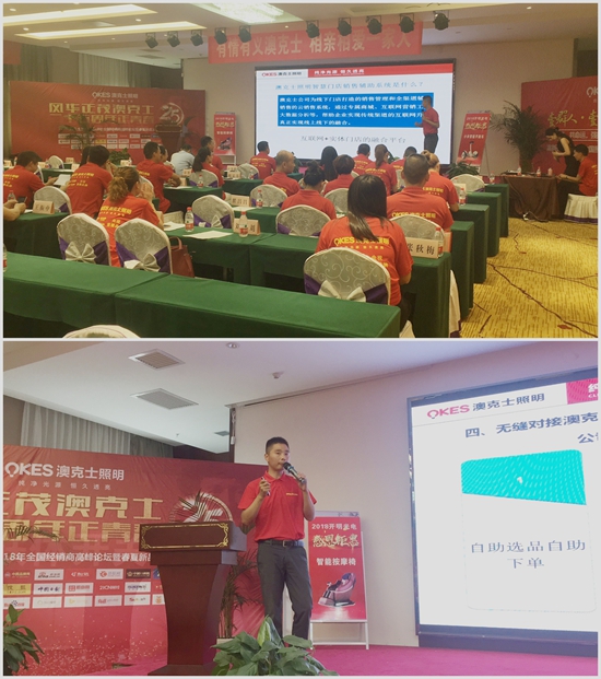 會議進行到了白熱化階段,澳克士照明西北大區經理趙長青先生在現場嘉賓的目光追隨中上臺發表關于“澳克士銷售系統”的專題演講。趙總的演講可謂是“干貨滿滿”,讓現場嘉賓紛紛拿出紙筆或手機認真記錄下來,勢要在未來的終端門店運營中巧妙地把知識轉化為具體實踐,助力銷售事業的發展。而我們也有充分理由相信通過銷售輔助系統的投入與落地,必將讓經銷商終端門店煥發出新的活力。