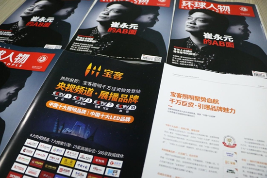 在如此多榮譽(yù)光芒及群眾呼聲的影響下,寶客照明成功吸引到了由人民日?qǐng)?bào)社主管、主辦,國(guó)內(nèi)發(fā)行量最大、最具權(quán)威性和影響力的綜合時(shí)政類期刊——《環(huán)球人物》采編部的青睞。經(jīng)過《環(huán)球人物》采編部長(zhǎng)時(shí)間與寶客照明的接觸、對(duì)企業(yè)發(fā)展的觀察及調(diào)研,最終“寶客照明”品牌專題報(bào)道榮耀登上《環(huán)球人物》!這將是寶客照明劃時(shí)代的一頁,是寶客照明品牌發(fā)展長(zhǎng)征上的一大里程豐碑!
