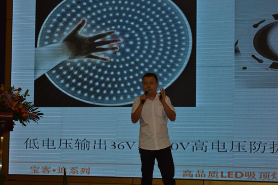 新零售模式固然重要,但產品作為企業精耕市場的重要籌碼,經銷商家人們更期待本次寶客將會帶給家人們怎樣的新產品。會上,寶客照明產品總監龍順先生便攜“寶客·追”系列新品親臨現場,一一講述寶客照明新品之產品賣點及創新突破點!