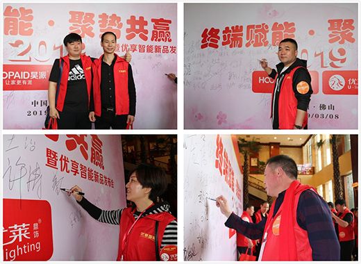 在全體家人們的共同見(jiàn)證下,紅彤彤的簽約本上刻下了雙方代表遒勁有力的簽字!簽約代表在鏡頭前合影留念,不少經(jīng)銷商站立起來(lái),將這歷史性的一刻用手機(jī)記錄下來(lái)。央視簽約儀式代表著優(yōu)享智能照明的品牌計(jì)劃正式落地,亦象征著“優(yōu)萊鼎飾”以及“昊派”在未來(lái)的品牌發(fā)展道路中有了“央視品牌”榮譽(yù)的加持能如虎添翼!