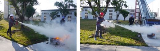 演練過程中,富士通電梯集團保安隊長向參與演練人員詳細介紹了滅火器、消防水帶等相關設施設備的使用規范、操作流程和注意事項。通過講解不同滅火器的適用類型,以及滅火器正確使用步驟,引導大家熟練掌握各類滅火器的適用范圍和使用要領,做到科學、合理、及時、有效地實施應急處置措施,提高突發情況應對處置能力。講解結束后,在保安隊長的指導下,全體員工分成兩組,自體驗了現場滅火的過程,熟練地按照滅火的步驟和方法沉著應對,成功快速地撲滅了火苗。