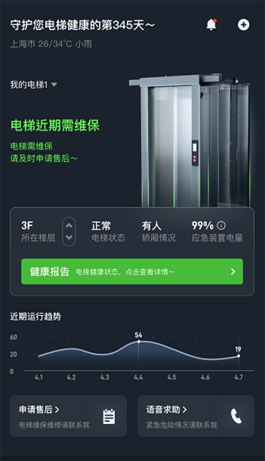 行業(yè)首個專于家用電梯智能化管理及運維的服務(wù)平臺LINVOL“iBUILDING梯管家”也亮相于品鑒會現(xiàn)場。美的樓宇科技電梯公司副總經(jīng)理蔡慶喜介紹到“借助iBUILDING的數(shù)智能力,‘iBUILDING梯管家’將在電梯全生命周期內(nèi)進(jìn)行產(chǎn)品狀態(tài)評估與運行狀態(tài)監(jiān)控,用戶可通過APP查看電梯健康報告,實現(xiàn)對電梯狀態(tài)的隨時關(guān)注。”LINVOL始終專業(yè)如一的售后團(tuán)隊與“iBUILDING梯管家”的技術(shù)響應(yīng)相輔相成,將提前預(yù)知故障,以數(shù)智力量守護(hù)每一程。