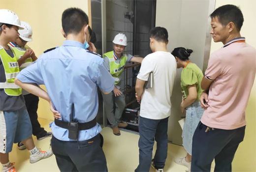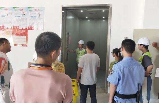 授課后,徐世雄帶領橡果美健集團維護部門一行培訓學員,根據培訓知識對園區內的客梯、貨梯進行實地操作練習。