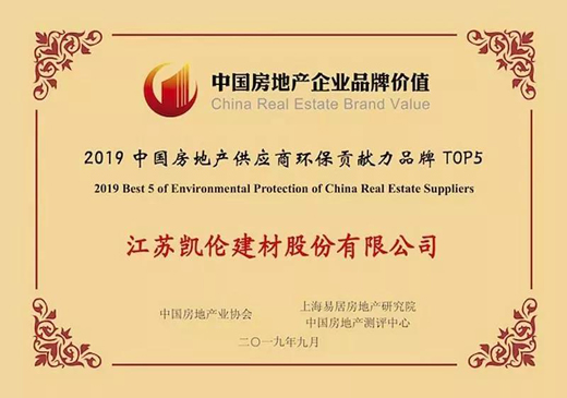 環保貢獻力方面,凱倫股份榮獲2019中國房地產供應商環保貢獻力品牌TOP5。秉承著“科技先鋒,綠色引擎”的企業宗旨,凱倫從管理、施工、辦公等幾大維度入手,推廣綠色設計和綠色采購,為市場提供優質的防水產品。