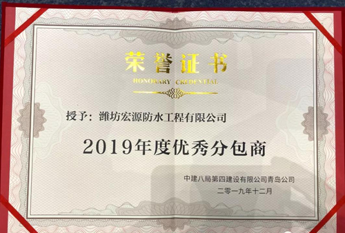中建八局第四建設有限公司青島公司分包商座談會召開。會上表彰了一批優秀分包商,宏源防水工程公司因綜合評分名列前茅入選“2019年度優秀分包商”榮譽榜單。