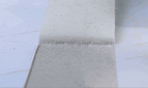 熱熔壓敏膠連接的是高分子主體片材與顆粒保護層,理想的覆砂狀態是砂子部分嵌入膠層,且完全覆蓋膠層。越厚的膠層越有利于表層顆粒與之融合,不破壞彼此核心結構,同時對粘結有促進作用。