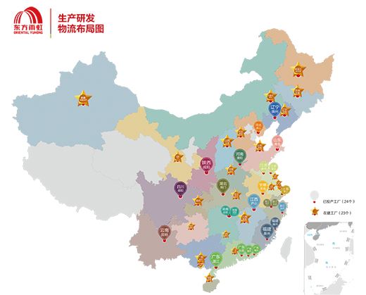 為向廣大客戶及消費者提供更為安全、專業、系統、高效的優質服務,也為打造“精益、優質、高效”服務平臺,東方雨虹以產業基礎及資源優勢為依托,將增速與提效相互結合,形成合力、同向發力。截至目前,企業已在全國布局47+生產研發物流基地、100+家分子公司、10+子品牌,高效實現“300公里輻射半徑,24小時使命必達”莊嚴承諾。
