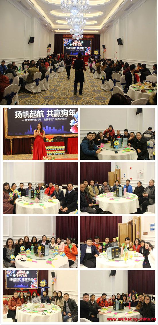 2018年2月7日,青龍建材中山公司2017年年終總結表彰大會及2018迎新年會在中山維出納國際酒店隆重舉行,青龍董事長宋敦清、營銷總監賀金龍、招商總監周炳陽、家裝事業部總經理于超軍、質量總監張科、中山工廠廠長劉文學、方文軍以及青龍中山公司、港口工廠、三角工廠全體員工參加了盛會。晚會還現場連線了青龍海南環球100GRC工廠和馬來西亞森林城市防水工地。晚會繼往開來,精彩紛呈,其樂融融,取得了圓滿的成功!