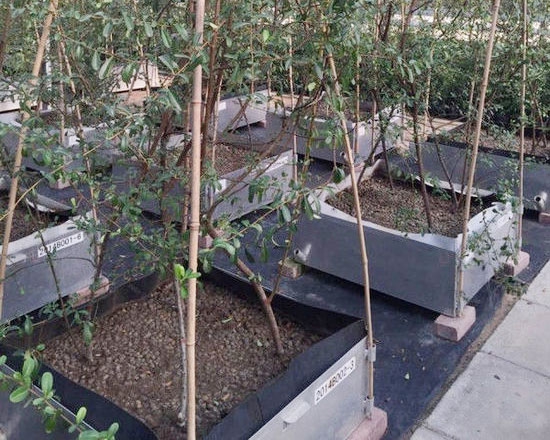 耐根穿刺實驗需在試驗箱中進行,并在指定條件下將實驗的耐根穿刺卷材置于根的下方。實驗卷材的試件安裝在6個實驗箱中,也就是做6個重復,每個實驗箱中的卷材試件都需包含幾條指定的接縫(4條立角接縫、2條底邊接縫以及一條中心T型接縫)。另外需要2個不安裝實驗卷材的對照箱,以便在整個實驗期間比較植物的生長效率。
