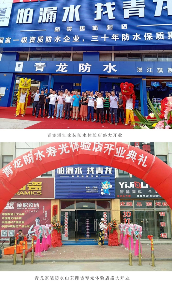 2018年7月,青龍家裝防水布局全國的步伐明顯加快。繼7月9日山東棗莊體驗店開業不久,7月18日,青龍湛江家裝防水體驗店、青龍山東濰坊壽光體驗店同時盛大開業。一個是建筑修繕的新秀,一個是工程防水的資深大咖,一南一北雙星閃耀,成為家裝防水領域的一大盛事,也讓青龍家裝防水受到業界空前關注。那么青龍家裝防水為何備受代理商青睞呢?