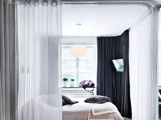 臥室適宜使用紗簾隔斷,紗簾不僅可以增加居室的溫馨感和浪漫感,還可以讓人感受到自然風(fēng)的輕柔拂過(guò);如果想要更好的增加臥室的溫馨感和浪漫感,可以在紗簾的樣式上下功夫。例如帶有精美層疊折花的羅馬式窗簾,可以為空間增添一絲柔美和寧?kù)o,一定程度上能提升睡眠質(zhì)量。