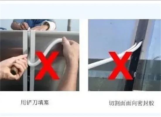 在室外作業,如果降雨后,接口里面潮濕未干就直接注膠,等太陽照射粘結基材及膠縫時接口里面的溫度升高,膠縫里面的潮氣蒸發,會把未固化的、比較軟的膠縫隆起泡,有時聚乙烯泡沫墊桿潮濕也會引起膠縫起泡。