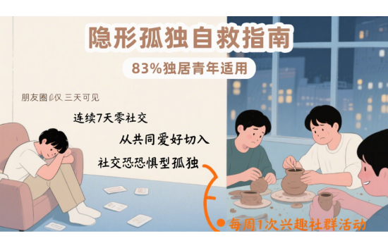 在繁華都市的高樓大廈間,獨居青年的身影越來越常見。他們遠離家鄉,懷揣著夢想,在這座城市中獨自打拼。然而,在看似自由的獨居生活背后,卻隱藏著一種不易察覺的“隱形孤獨”。據相關調查,高達83%的城市獨居青年正遭受著這種孤獨的困擾,卻不知如何自救。今天,就讓我們一同揭開“隱形孤獨”的面紗,探尋有效的自救指南。