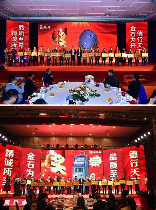 集團副總裁為優秀經銷商頒發了“翠竹成長獎”、“彩虹服務獎”、“磐石忠誠獎”的榮譽獎杯和獎品。他們精耕市場,勇于實踐,積極轉變思想觀念,緊跟企業思路往前走,取得了突破性成就。這份榮譽是對他們選擇金德,堅守金德,與金德風雨同舟、共同發展的嘉獎。