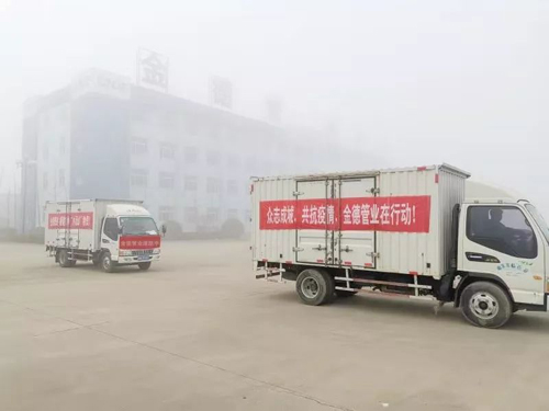 在1月29日早上7點,第一批援建物資的車隊從金德山東工業園出發。
