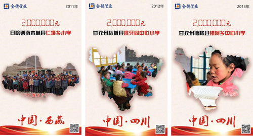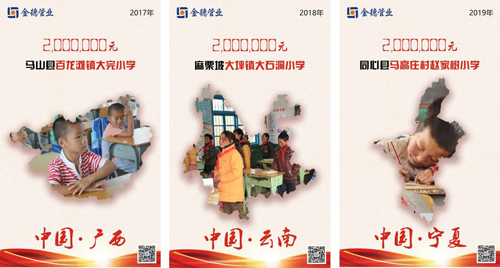 金德管業把公益助學上升為企業文化,視為一份用心對待、誠心經營的事業。十三年以來,金德愛行之路從未停步,遍及新疆、西藏、四川、寧夏等9個省份,目前捐建已達13所希望小學,累計善款達2579萬元。