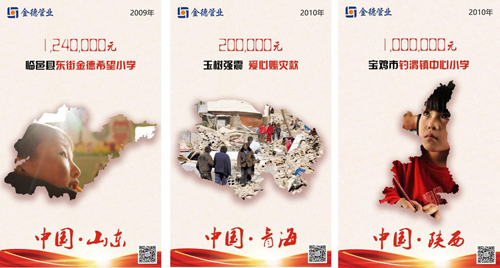 “仁以為己任”,金德人從2008年起便把5月定為企業內部的“慈善月”,由此緬懷汶川地震中不幸遇難的同胞們,也旨在弘揚在危難逆境中守望互助、大愛無疆的善愛精神。