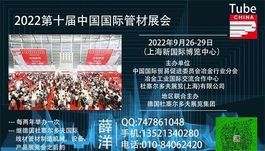 廣發英雄帖!!全球管材行業最具影響力的兩大展會”之一!中國國際管材展覽會(Tube China 2022)重裝于2022年9月26-29日在上海新國際博覽中心亮相,這是一個為滿足中國市場最新需求度身定做的展覽。由中國貿促會冶金行業分會、冶金工業國際交流合作中心和杜塞爾多夫(上海)展覽有限公司共同主辦。中國國際管材展覽會(Tube China)得到了中國鋼鐵工業協會等國內相關行業協會的支持!同時也得到了國際管業協會和德國杜塞爾多夫展覽集團及該機構的全力支持!無與倫比的地位受到展商與觀眾的一致肯定。