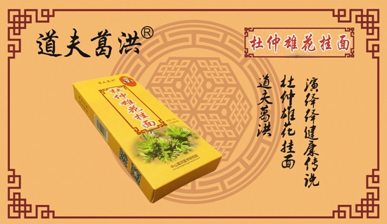 道夫葛洪杜仲雄花掛面,植物草本遵古炮制,藥食同源美味補身,養生之道內調為本。一體多癥,長期食用,五臟調和,身體健康。