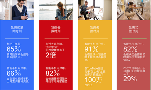 從營銷的角度看,未來最重要的一個趨勢就是,廣告正在消失——那些旗幟鮮明的“硬廣告”正在消失,廣告正在以“溝通”的形式融入到你的生活。在移動時代,無論何時何地、遇到何種狀況,人們通過使用手機即時解決問題的時刻;也就是消費者產生學習、探索、觀看、查找或購買意愿時,習慣于通過智能電話這類最貼身的移動設備達到目的、滿足需求的時刻。