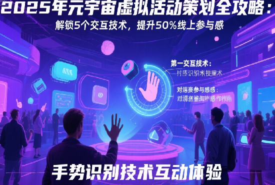 在數(shù)字技術(shù)日新月異的2025年,元宇宙正以勢不可擋的姿態(tài)重塑著活動策劃的格局。線上活動不再局限于傳統(tǒng)的視頻會議和直播模式,而是朝著更加沉浸式、互動性更強的方向發(fā)展。對于活動策劃者來說,掌握能夠提升線上參與感的交互技術(shù),成為了打造成功元宇宙虛擬活動的關(guān)鍵。本文將為您詳細介紹5個在2025年備受矚目的交互技術(shù),助您的活動脫穎而出。