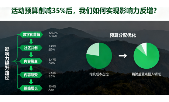 在當前經濟環境下,企業面臨預算削減的情況屢見不鮮。當活動預算突然減少35%時,許多人會認為這將直接導致活動影響力下降。然而,只要我們采取正確的策略和方法,不僅可以彌補預算削減帶來的損失,甚至有可能實現影響力的反增。本文將從多個角度探討如何在預算有限的情況下,通過創新思維和精準執行,讓活動效果最大化。