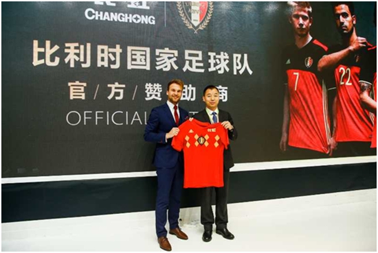 2018年,既是長(zhǎng)虹建業(yè)60周年,也是第21屆世界杯足球賽的舉辦之年,長(zhǎng)虹集團(tuán)與世界杯強(qiáng)隊(duì)——比利時(shí)國(guó)家隊(duì)的攜手合作,可謂是“強(qiáng)強(qiáng)聯(lián)手”的一大代表。同時(shí),比利時(shí)國(guó)家隊(duì)也將作為長(zhǎng)虹拓展海外市場(chǎng)的重要合作伙伴,見(jiàn)證長(zhǎng)虹征戰(zhàn)世界。