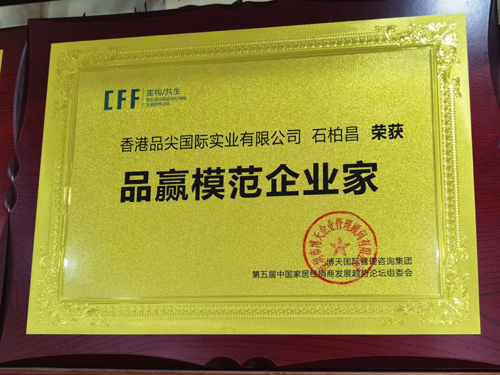 以“重構·共生”為主題的第五屆中國家居經銷商發展趨勢論壇在蘇州同里湖大飯店隆重舉辦,香港品尖國際受邀出席本次會議。會上,香港品尖國際總經理石柏昌先生被組委會授予“品贏模范企業家”榮譽稱號。