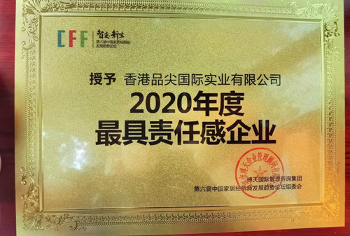 香港品尖國際憑借突出的行業貢獻及高度的行業責任感,得到行業專家及活動組委會的一致認可,成功將“2020年度最具責任感企業”大獎收入囊中。