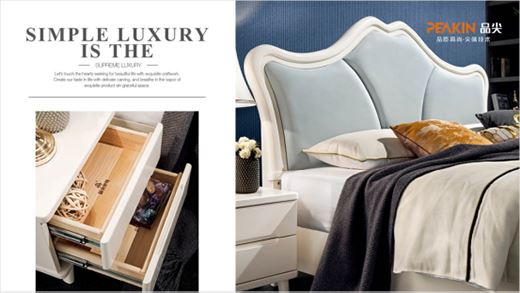 品尖家具始終保持著對用戶睡眠需求的關注,通過科技與創新,為更多家庭帶來高品質睡眠體驗。品尖實木床選用北美金絲白木,其木性優越,質地堅硬,經久耐用,綠色環保,是上好的家具木材,輔以意大利輕度炭化工藝,分解木材里的有機物,嚴控木材含水率,提高木材抑菌抗腐蝕性能,使木材不受熱脹冷縮的影響,不易開裂。在床體框架上,品尖實木床采用雙龍骨承托設計,一體成型原木雙龍骨,可承重6噸,床體能使用達10年以上。除此之外,品尖還將自主研發的反螺紋半月牙靜音技術運用到床體設計中,睡感踏實超靜音,靜享舒適睡眠。