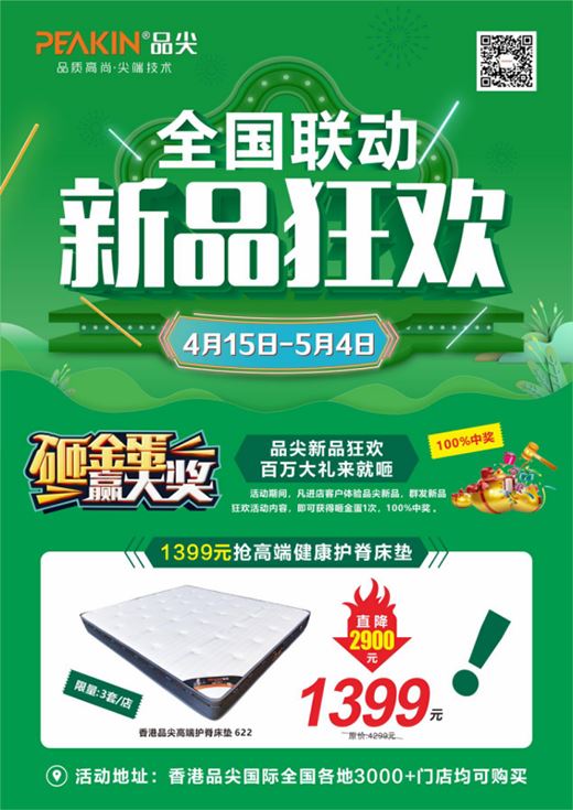 值此五一勞動節來臨之際,為答謝各位經銷商以及消費者長期以來對品尖品牌的支持與厚愛,品尖于2022年4月15日—2022年5月4日推出全國聯動·新品狂歡,與廣大新老客戶共慶五一佳節。