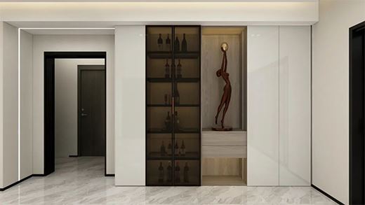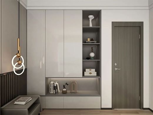 深淺拼色入戶柜,高低搭配,開、關組合,有對比的空間,富有變化和靈動感。