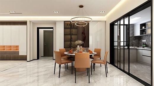 放置圓形餐桌,空間也是綽綽有余。一家十口、四世同堂圍餐,依然是十分敞亮。