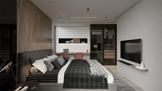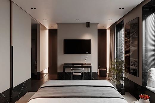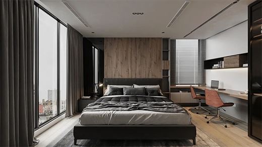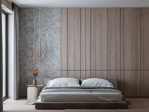 溫和的淺木色讓臥室內(nèi)斂沉穩(wěn),