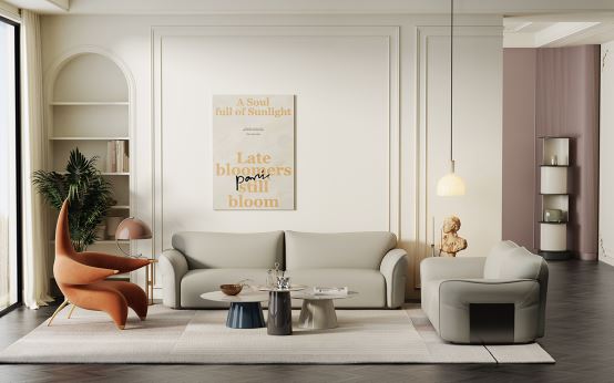 拋去浮華外在,探尋事物的本身。洛品有家簡約輕質感系列家居,去除繁瑣設計及奢華、復雜的裝飾,營造一種沉穩質樸的家居空間。洛品有家選用醇厚的大地色系,將低飽和度的配色運用到極致,使空間變得通透雅致、溫馨且獨具品味。布藝、金屬、皮質與木,不同材質在同一空間中以其不同的肌理相互碰撞融合,呈現出現代簡約與古典美韻并存的輕質感風。