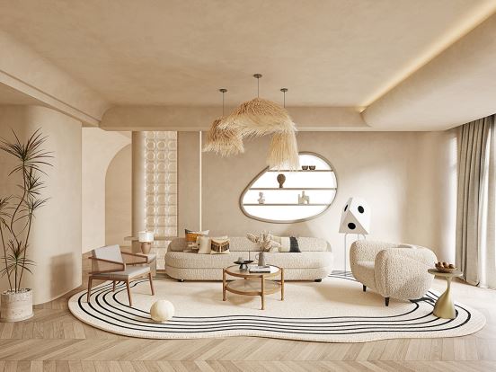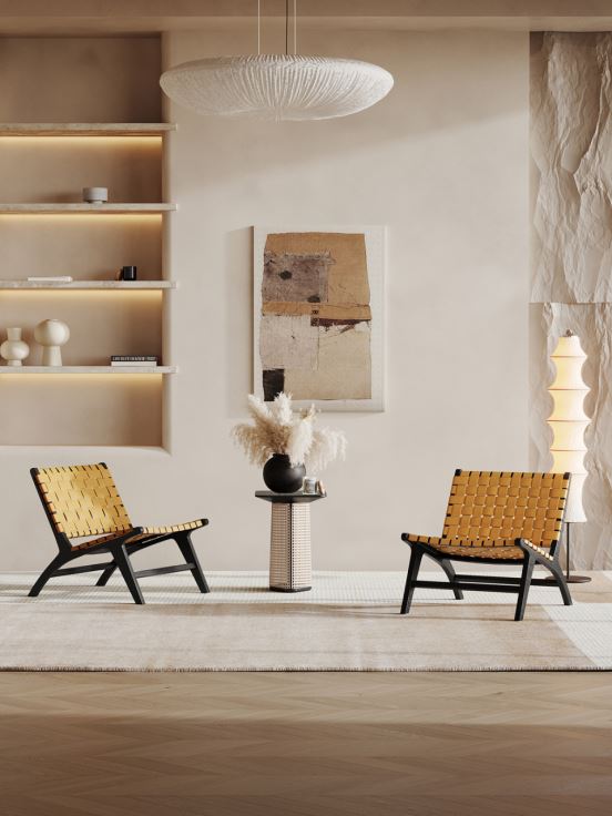 客廳,作為家居環(huán)境中出鏡率最高的地方,營造清爽宜人的客廳空間尤為重要。在客廳布置的時候,選用洛品有家侘寂系列家具。比如藤質休閑椅,置于屋內一角,搭配綠植裝飾,清新自然中又透出古樸沉穩(wěn)的意境,對避暑相當有益,是休息及會客的特色空間。