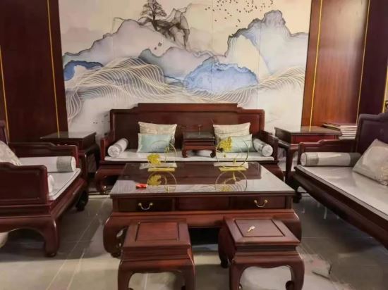 比如雕刻有祥云、如意、卷書等吉祥圖案的紅木沙發, 就是非常不錯的選擇。