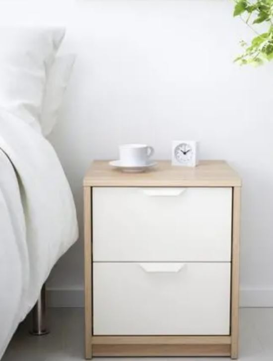 小貼士:床頭柜尺寸要符合標準,寬度盡量控制在400mm-600mm,深度盡量控制在350-450mm,高度盡量控制在500-700mm。