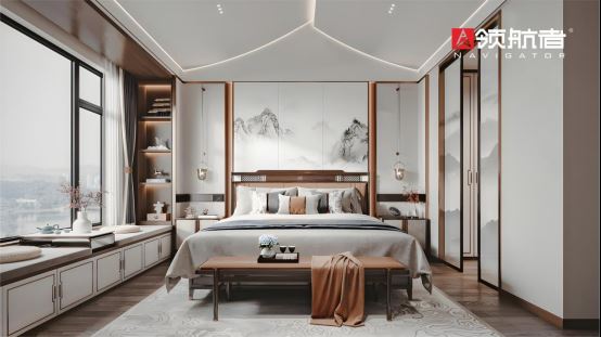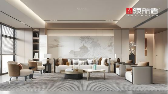 領航者在新中式家居的設計中,不僅凸顯出現(xiàn)代生活的質感,更像是一幅高級的油墨畫,每一筆勾勒都彰顯出生活中的理性之美。而在一些細節(jié)的處理上,領航者家居更是獨具匠心。