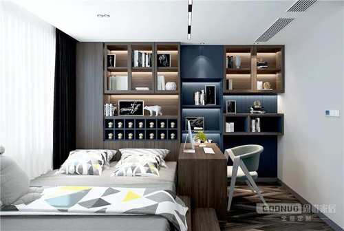 臥室書房利用書桌+床、書桌+飄窗或書桌+衣柜等一體式的設計可以大大節省空間。
